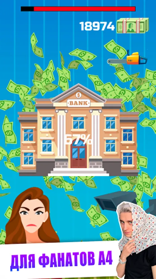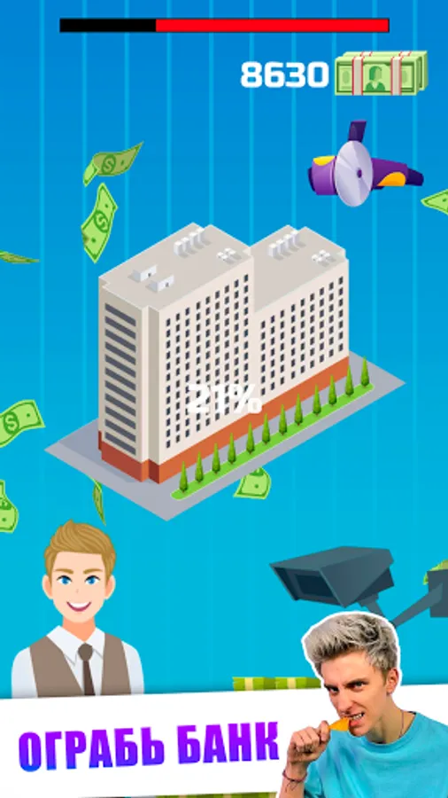 Грабь банки, улучшай инструменты, открывай новые уровни города, заработай свой миллион.