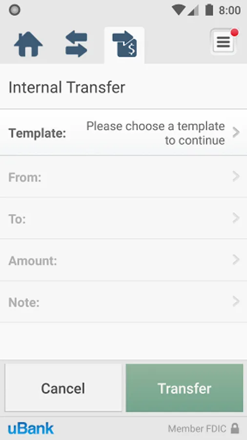 TRANSFER FUNDS- Transfer funds between your eligible PCB banking accounts.
