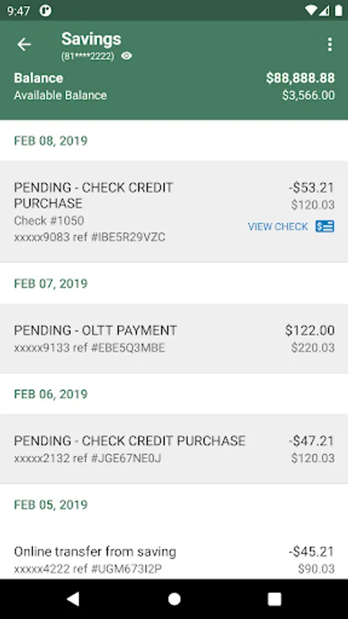 VIEW TRANSACTIONS-View recent transaction history in your accounts and get check images.