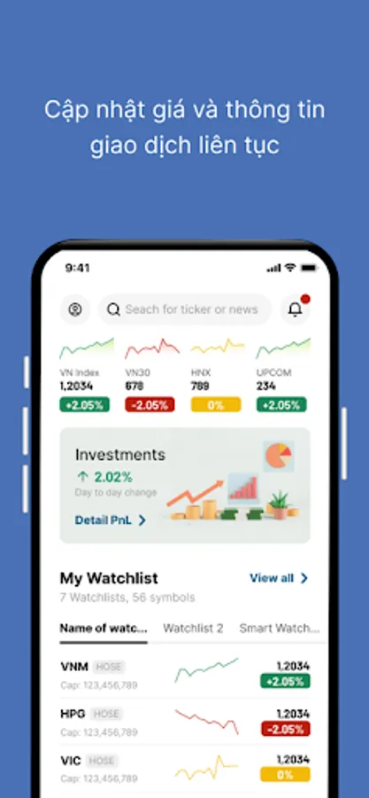 - Collect comprehensive information, quickly and conveniently thanks to integrating company profile data, transaction history, financial reports, news, and events of the entire market from many accurate and transparent sources. .