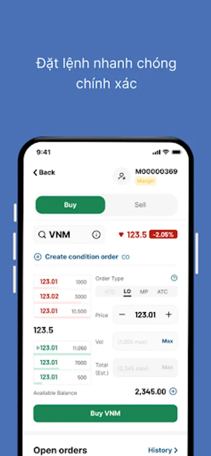 - Log in, place orders, manage orders and investment portfolio, and conveniently structure assets