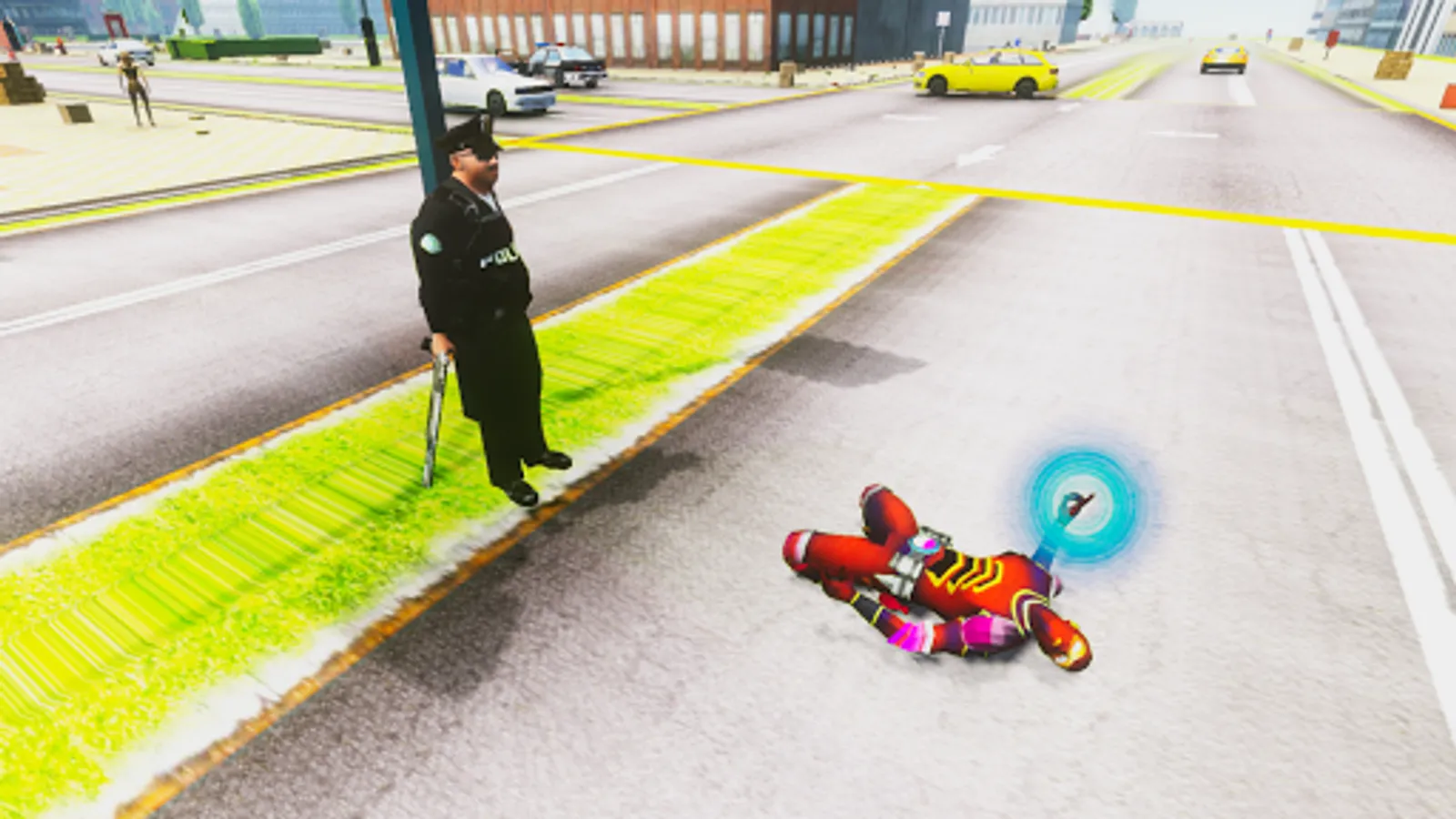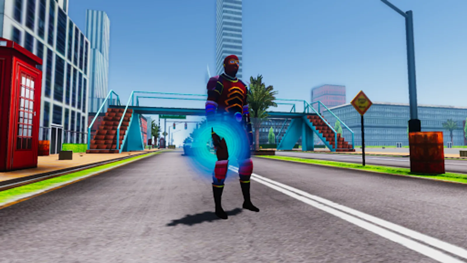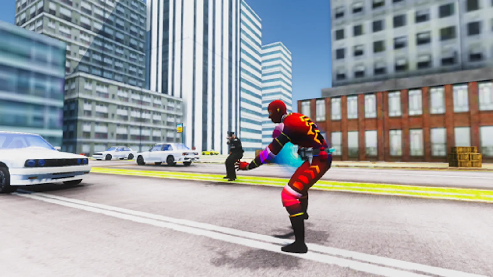 Our Superhero can drive around a very realistic city environment and attract metail items as a weapon to finish his missions.