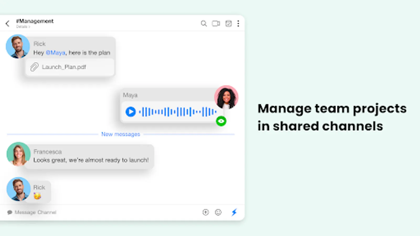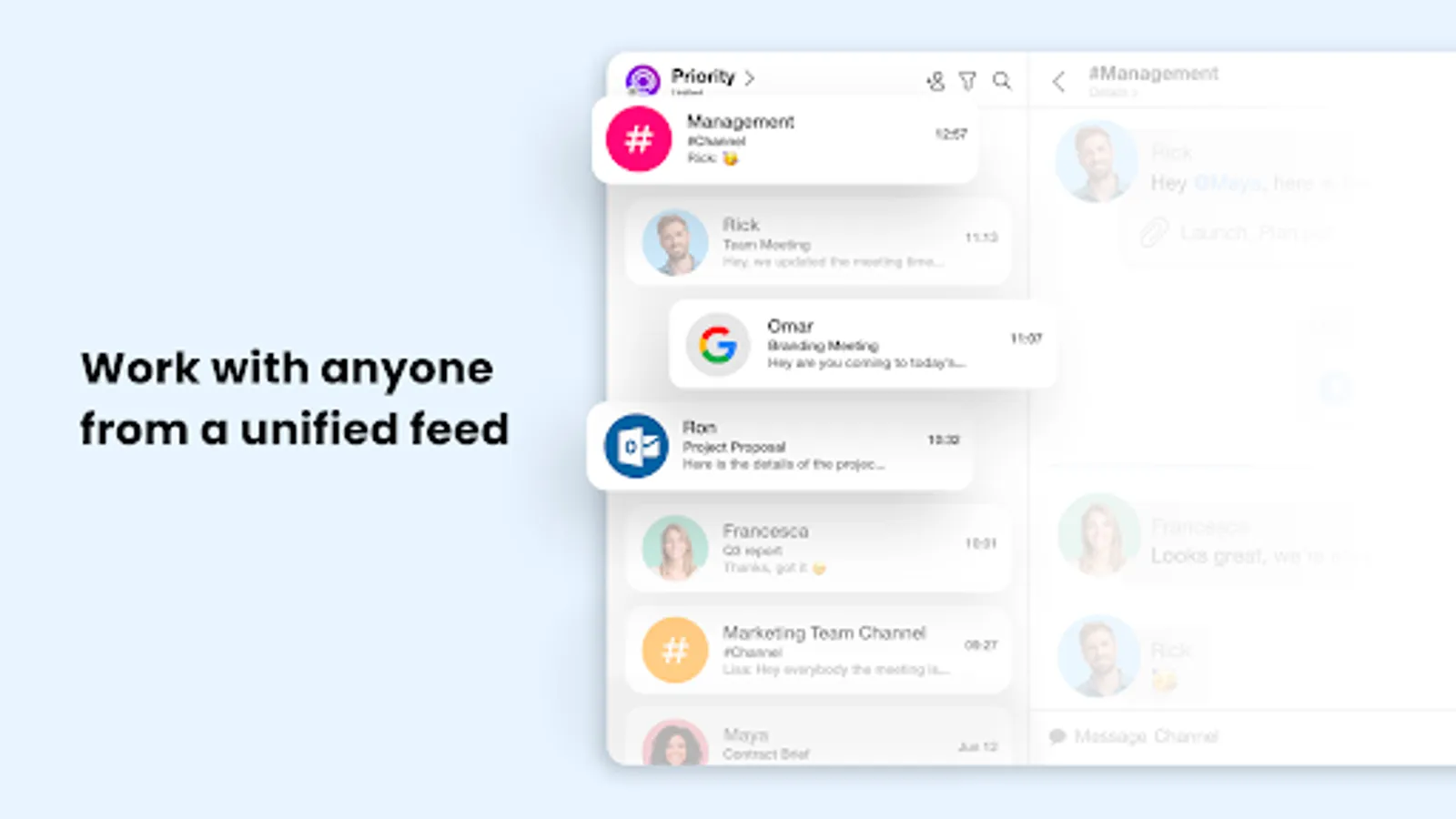 Stay on top of your team chat, email, and meetings all from one unified feed.