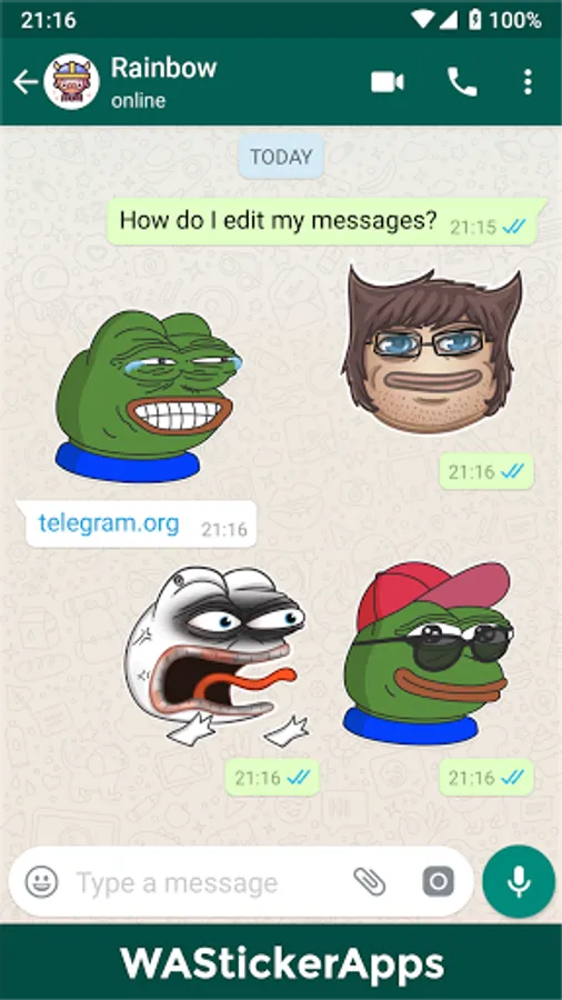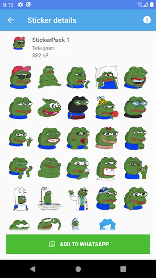 Funny collection of Pepe the Frog Stickers and over 300+ Stickers for WhatsApp.