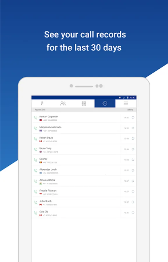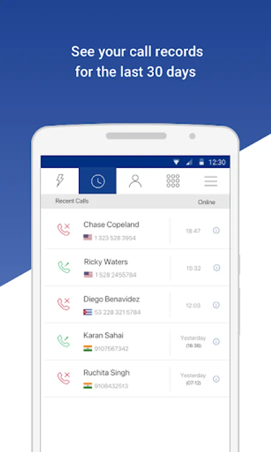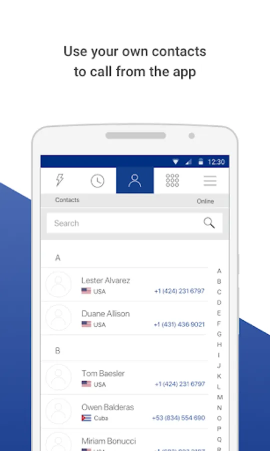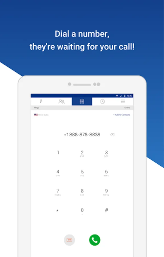 This feature will help you call any contact number without an Internet connection. For any international contacts you may need to call, a local phone number will be instantly made available for you.