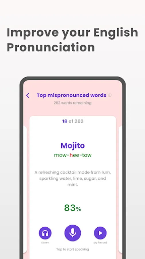 Want to learn to speak English like a native speaker? Immerse yourself in real situations and conversations! You don't have to hire a costly teacher to sound like a local. Get instant feedback on pronunciation and fluency!