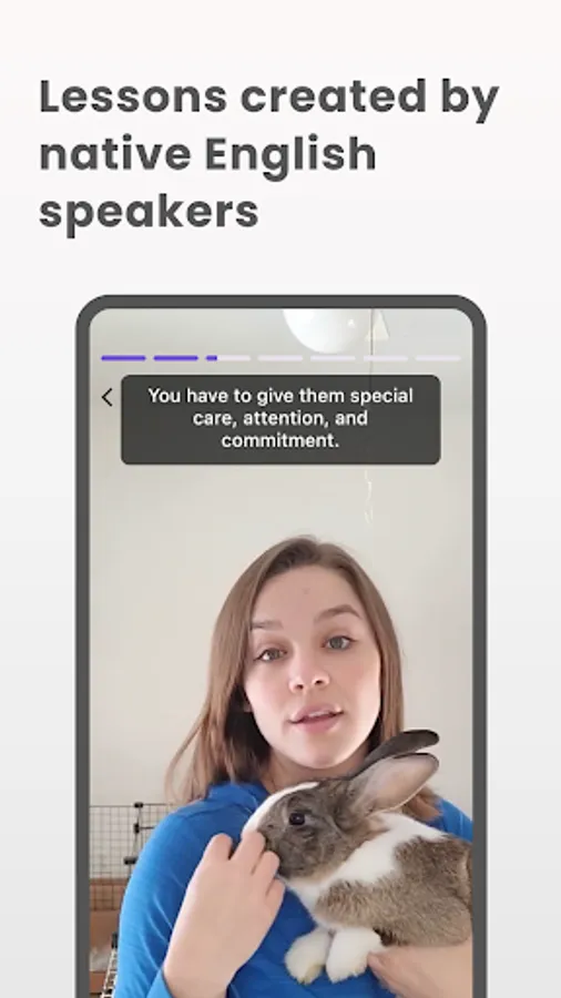 No more boring grammar drills and rules. Learn real English with our engaging videos and speech assessment algorithm. We won't show you ads, we promise.