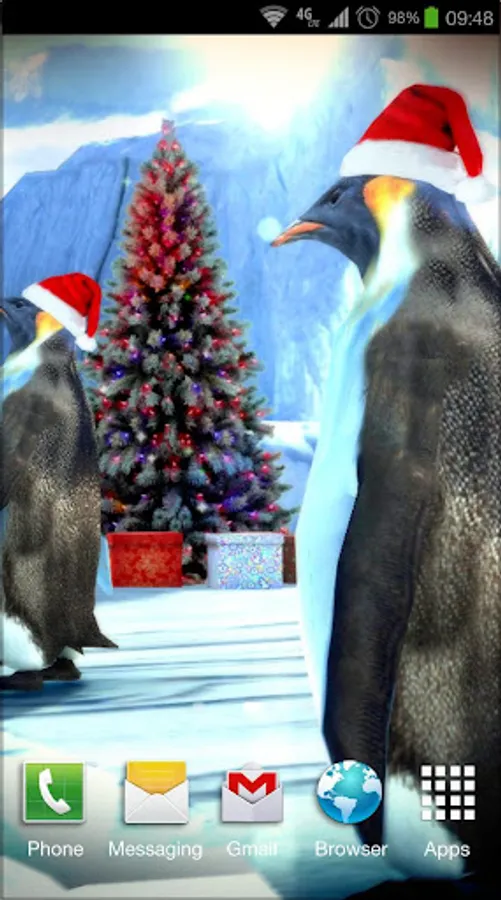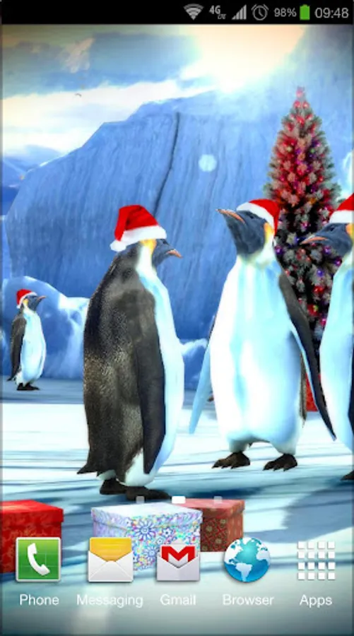 Installation: The main screen (long press) → Live Wallpaper →Christmas Edition: Penguins 3D