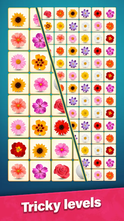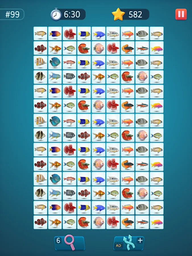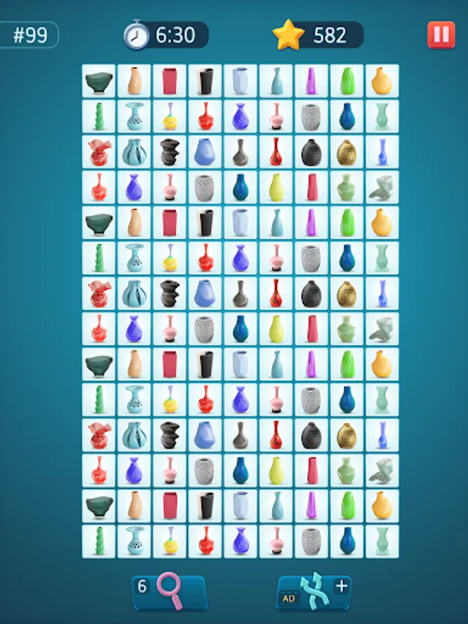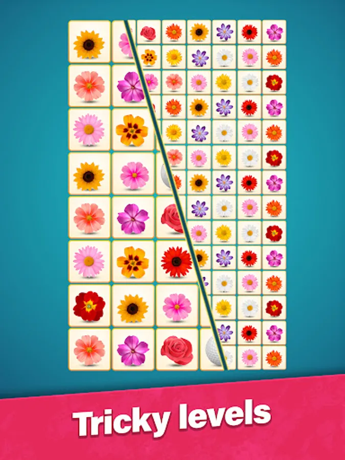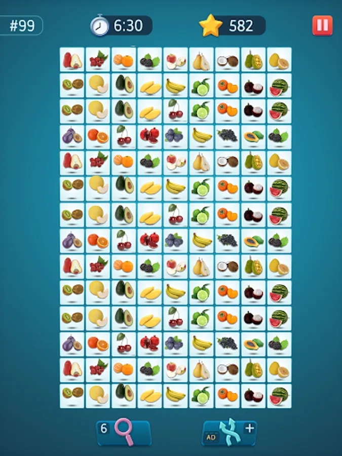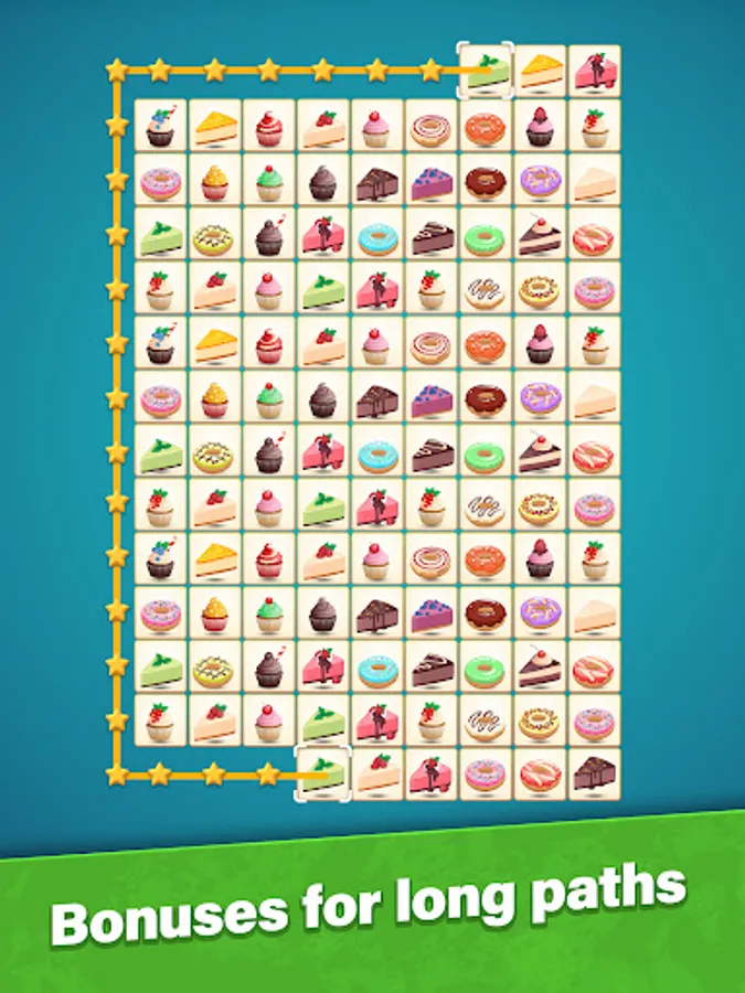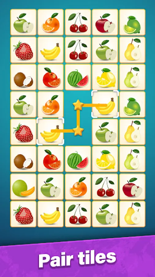 Tap to select a tile. Then find a similar tile to connect them together. Try to imagine a future path between these tiles. The pair matching puzzle allows to draw three lines maximum connected at a 90° angle. Can you onnect tiles like that? If yes, go and tap for the second time. Remember, the longer the path – more bonuses you'll get in this pair matching puzzle game. Use your brain and logic!