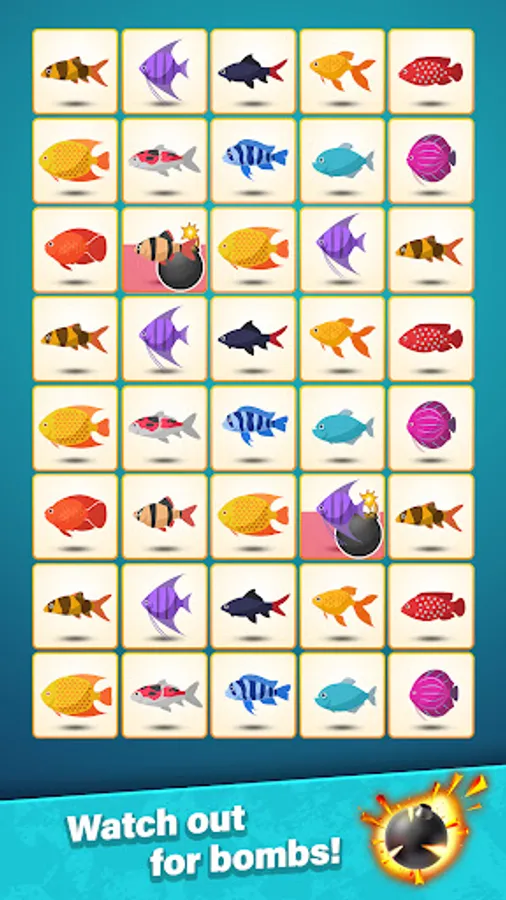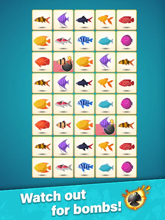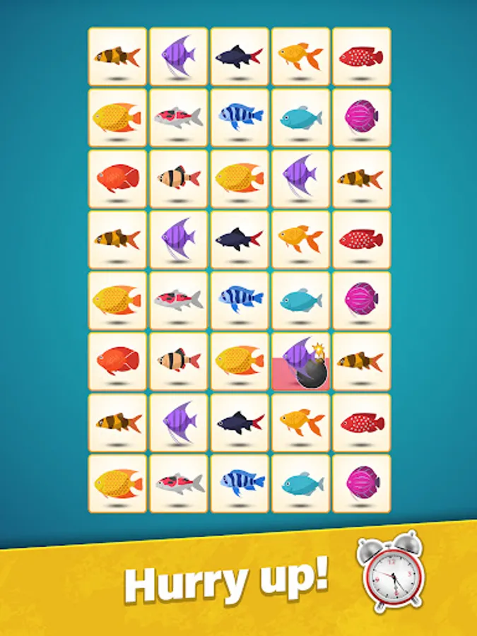 Enjoy the relaxing pair matching puzzle and train your focus and memory. Explore different challenging pair matching puzzle modes: Bomb and Sliding. Bomb is a very intresting matching puzzle mode: certain tiles are blocked and very explosive, so keep your eyes open! In the Sliding mode, each row slides aside as you crush a pair of tiles.
