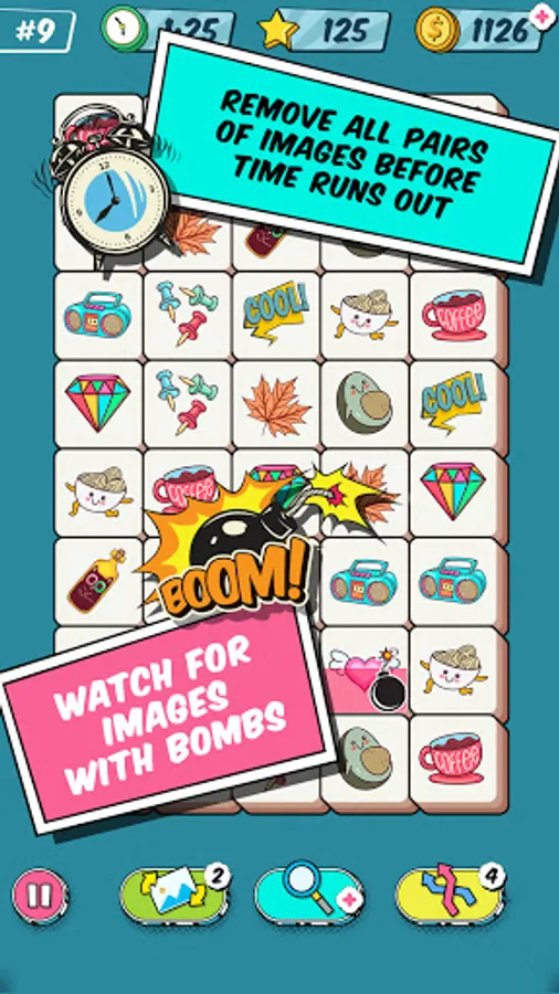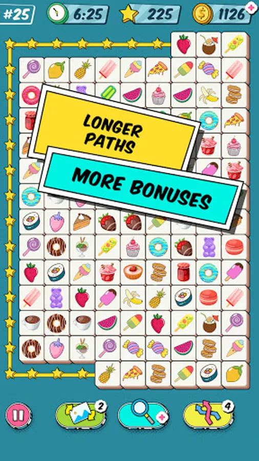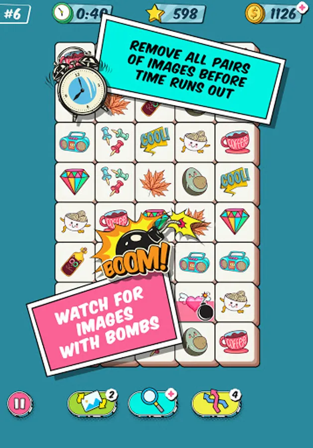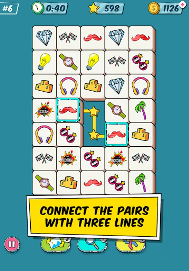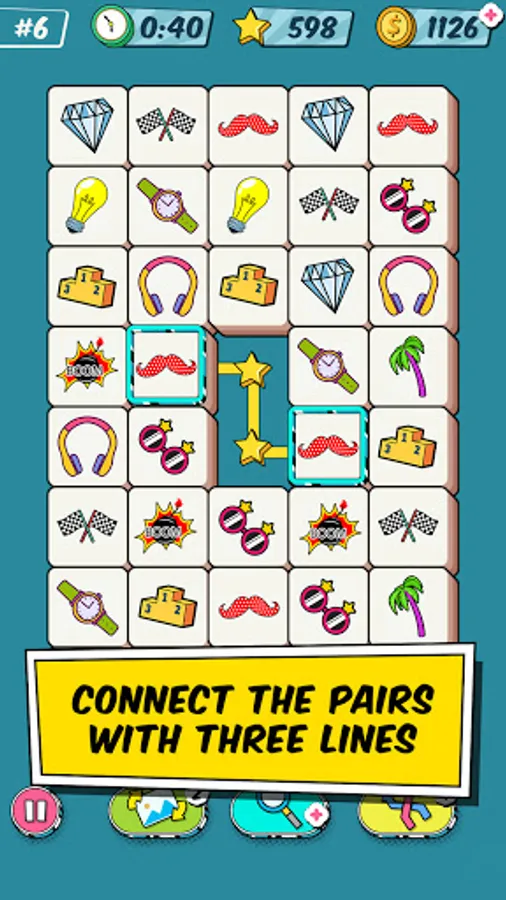 Connect two identical tiles in 3 moves among different types of images on the board. Find and tap on the first tile to select it. Then find the same second tile and make sure you can create a path from it to the first one. Tap on the second tile to connect them. Find all the tiles before time runs out. Each level is different and later levels will be harder. Match 2 tiles of the same type and find all images to clean the board – you'll not pass the level until all the tiles are matched. Tile Onet is a tile matching game for kids and adults. Train your brain and have fun connecting tiles daily!