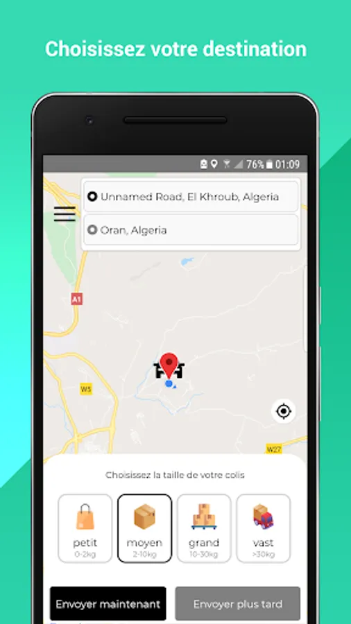 Pina is an application Specialized in Express delivery which allows individuals to send their packages regardless of their weight and anywhere in Algeria safely and at a cheap price and as quickly as possible in just a few clicks