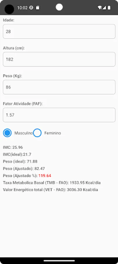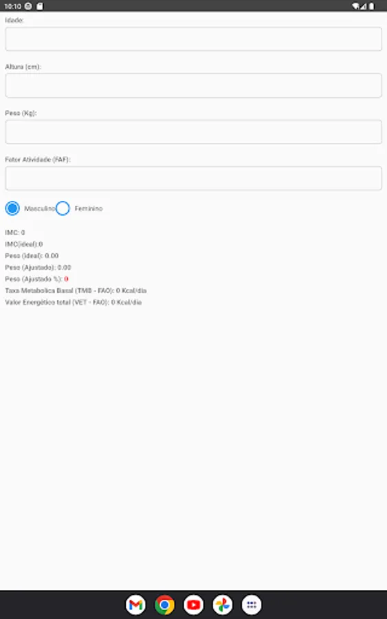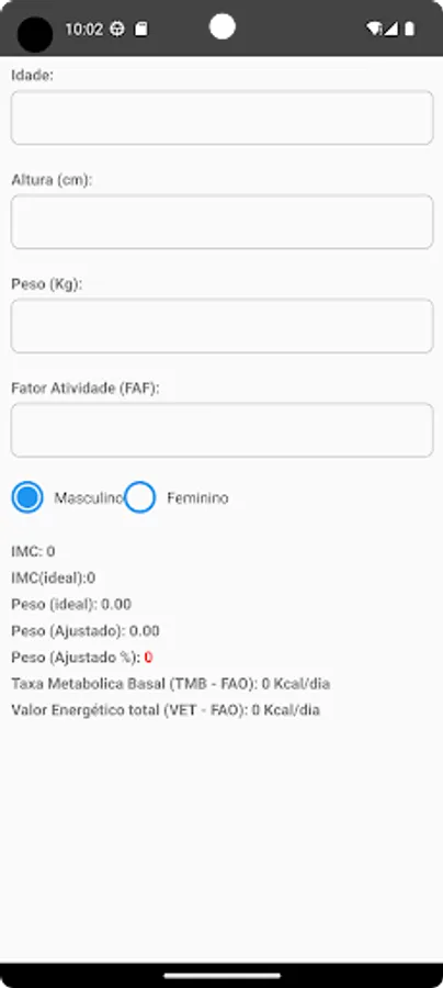 Perfect for nutrition students and/or professionals in the field. This application allows easy calculation of nutrition and dietetic indexes.
