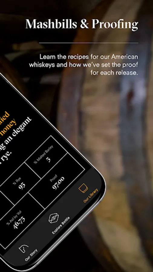 In addition, the app provides content about each of the details displayed on the label, providing a deeper look into the traditions and the vocabulary of horse racing and American whiskey. It also helps you discover where to enjoy it nearby.