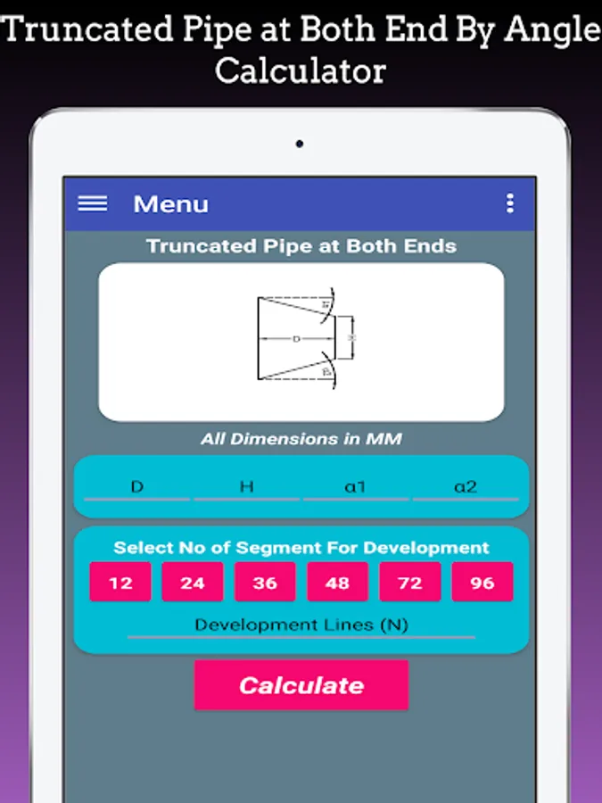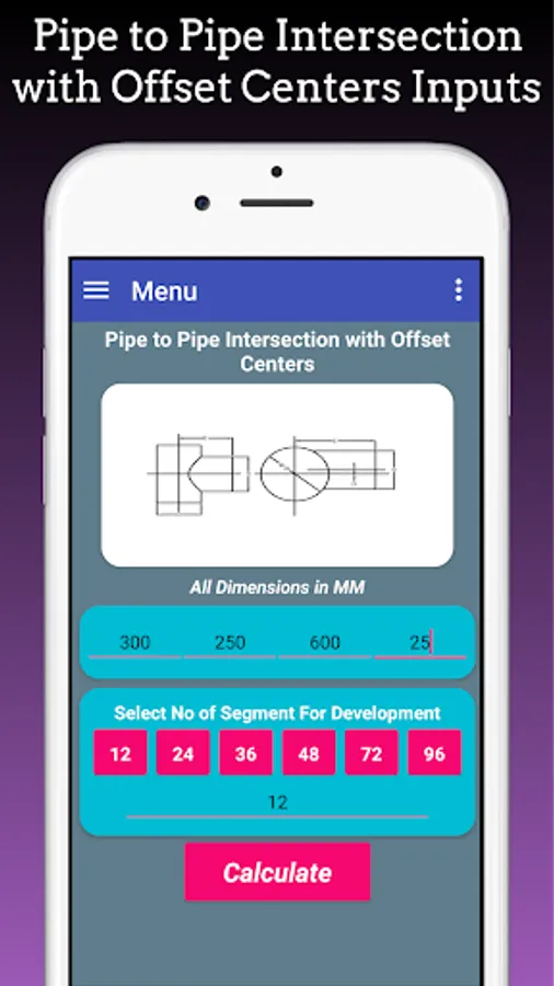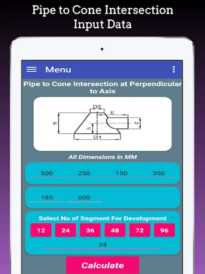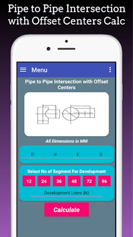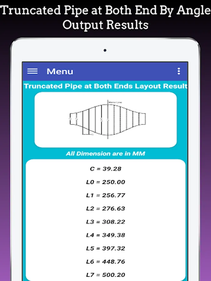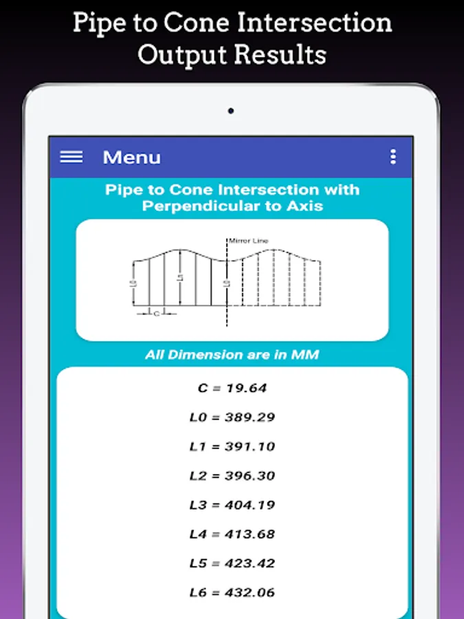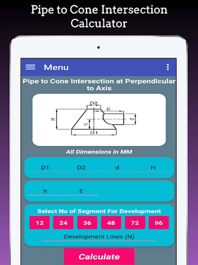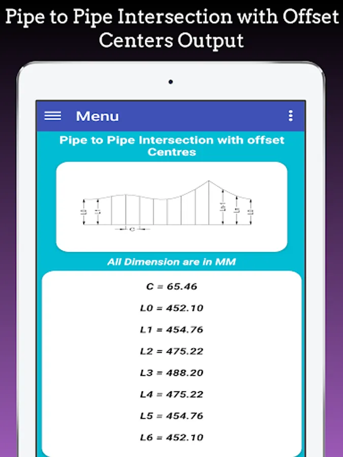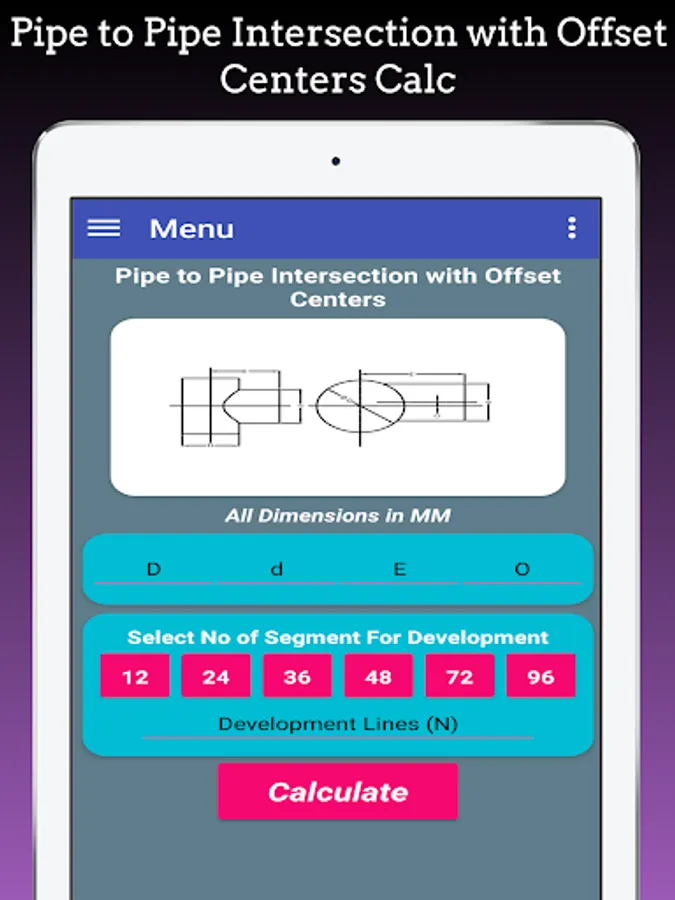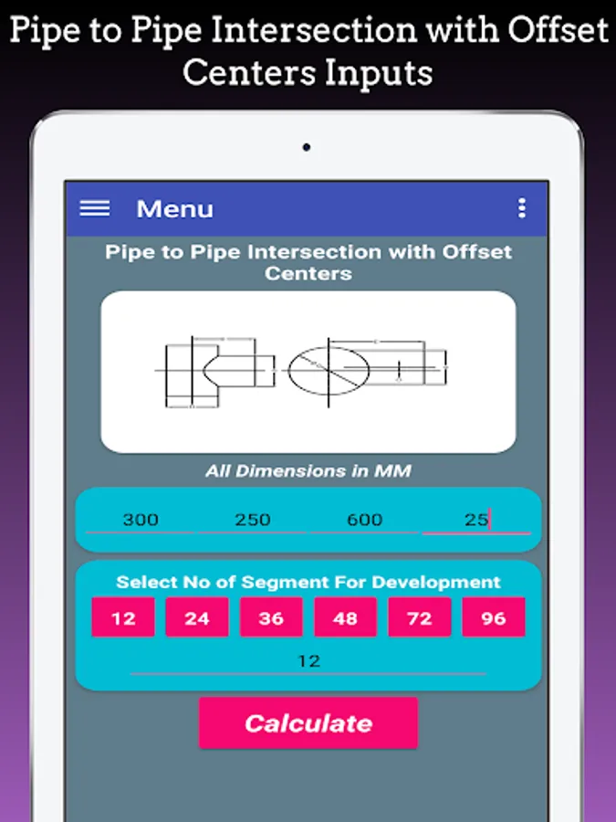 This app is also used to Layout Branch pipe to Pipe, Pipe Branch Cutting, Pipe tee Branch, Pipe Y Formation and it based on Pipe branch Cutting formula.