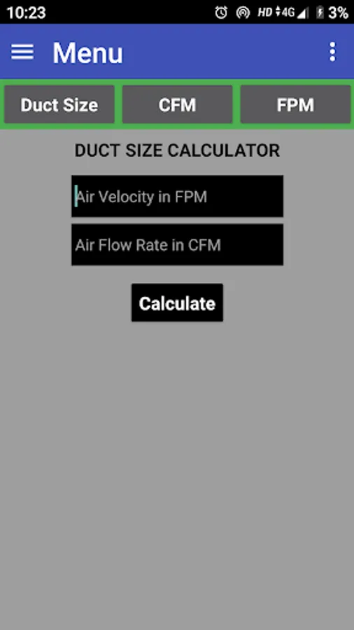 This App is also Calculate Air Flow rate in CFM and this app is also calculate in Air Velocity in FPM.