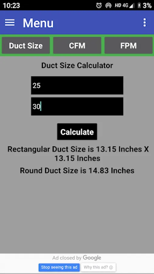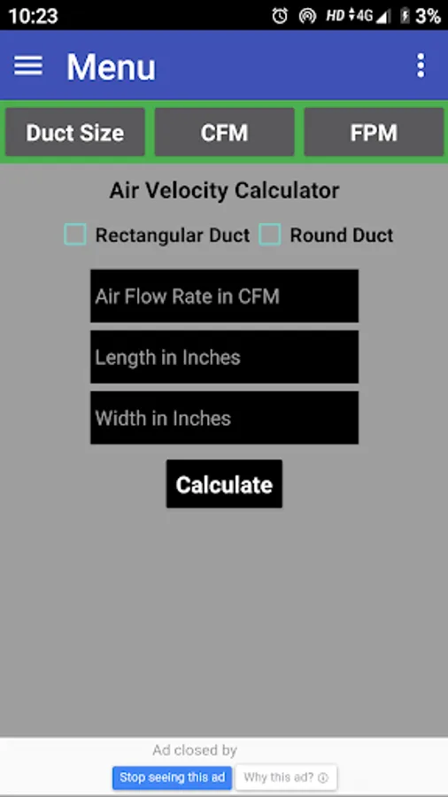 This app is developed to Calculate Duct Size Required with available CFM & FPM.