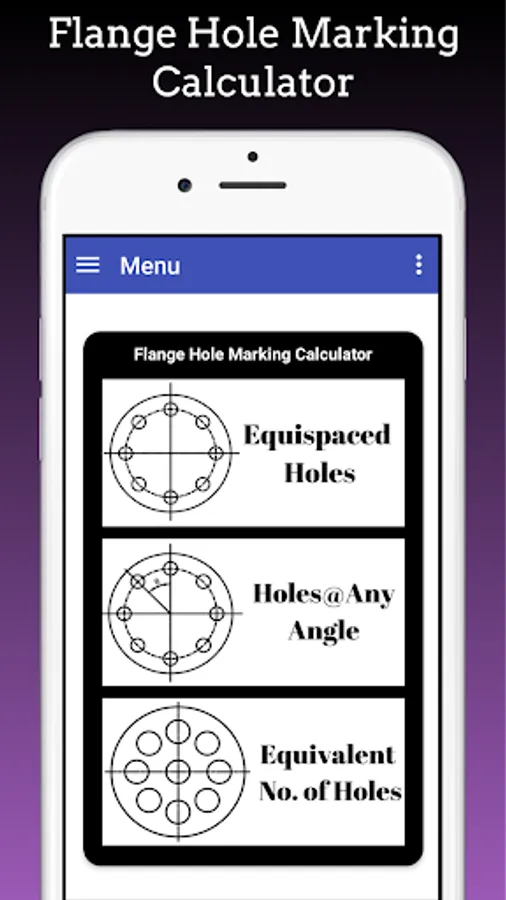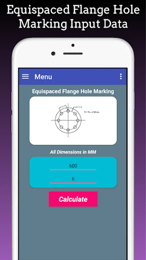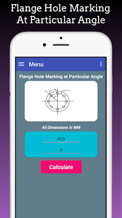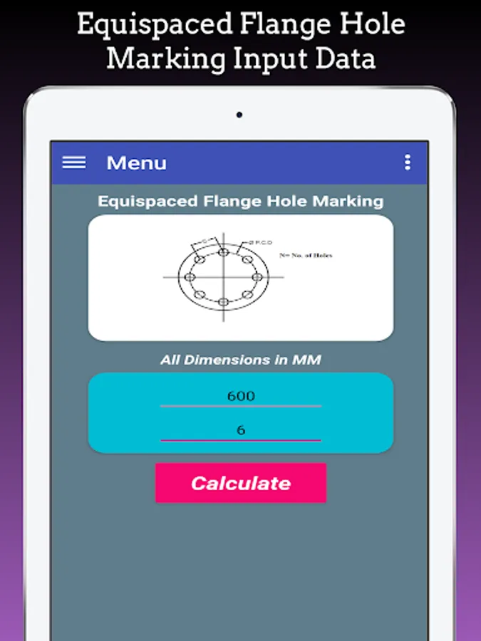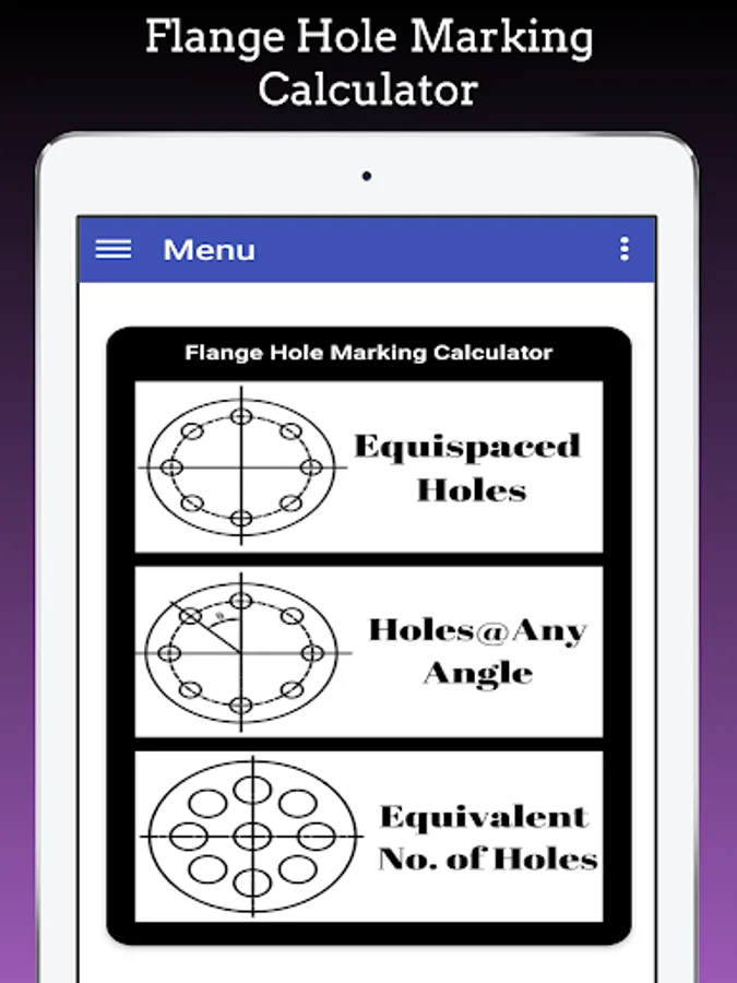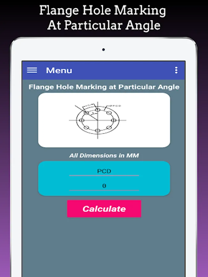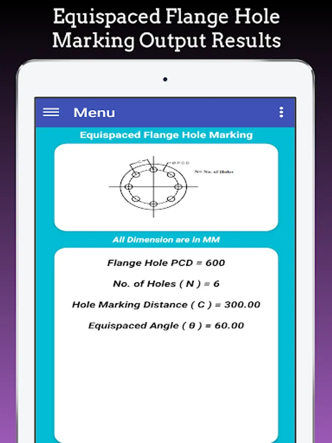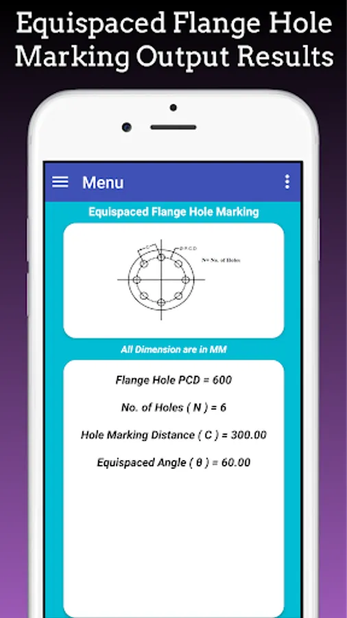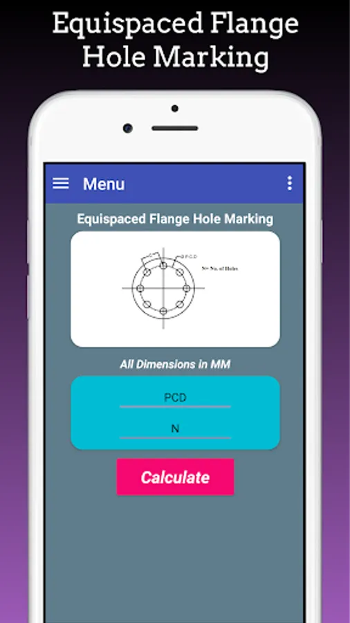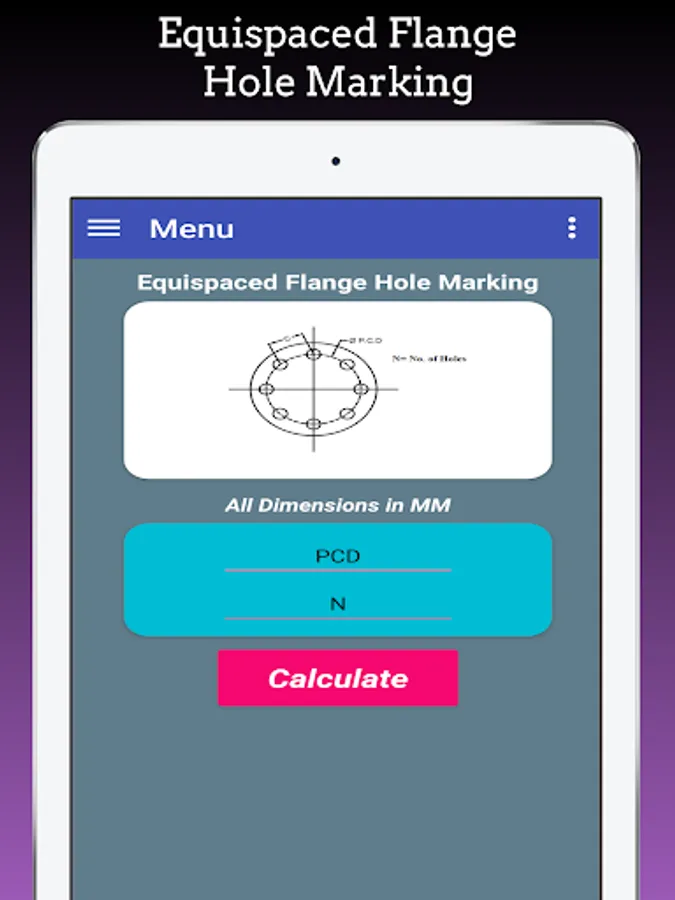 This App Calculate Flange Hole Dividing Hole Marking for Equispaced Flange Holes, Flange Holes at any angle and Equivalent No. of Holes.