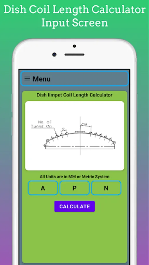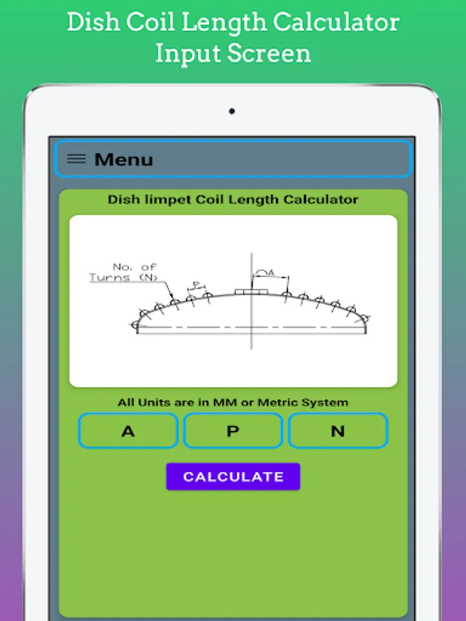 In This App Length of Coil on Dish End is Calculate using Input as Coil staring Arc Distance, No of Turns of Coil and Pitch of the Coil.