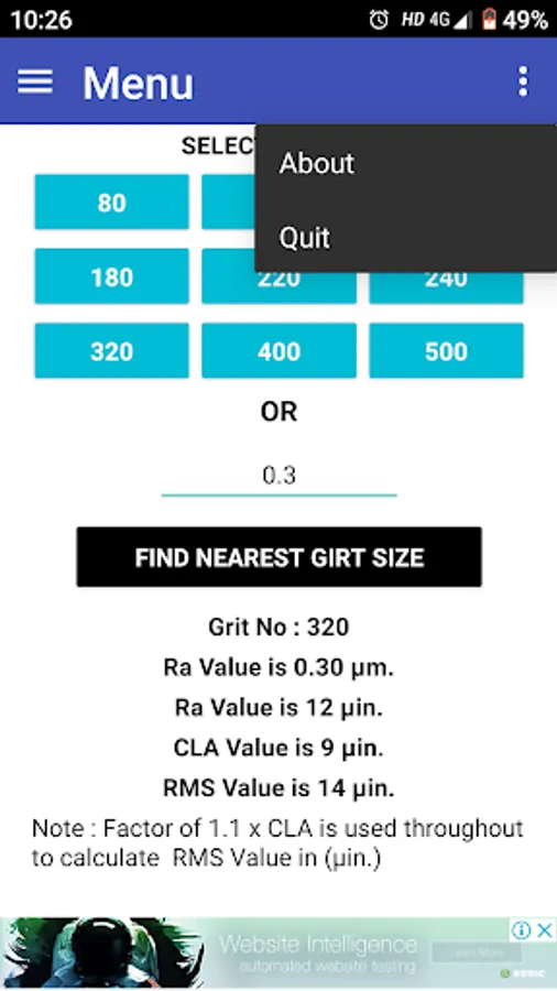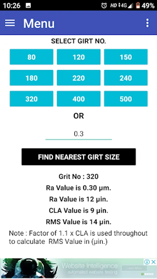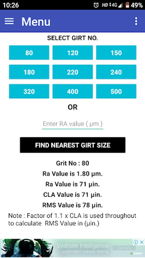 This app is Gives Ra Value of Stainless Still Polishing Area for selected Girt No.