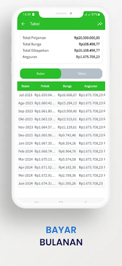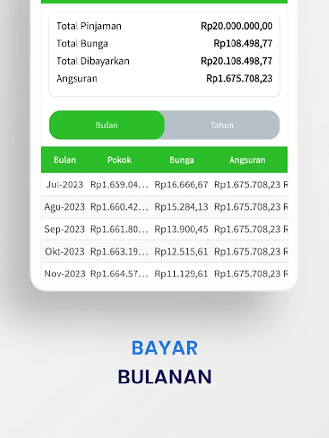 Monthly payment amount: IDR 2,000,000/12+24,567= IDR 191,233