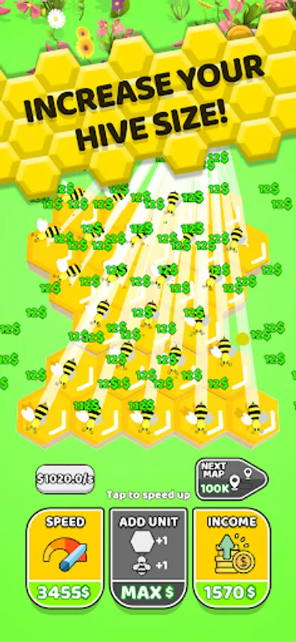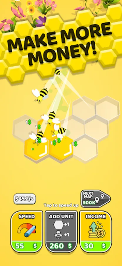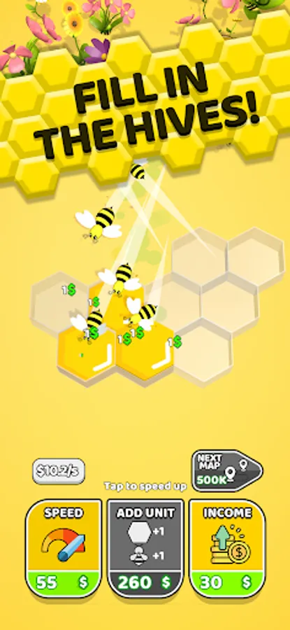 Create your own bee hive! Add bees, earn money as you make honey. Upgrade your hive by increasing your speed, income and buy new units. Lots of colorful maps are waiting for you!