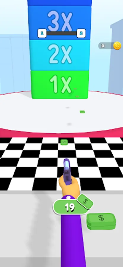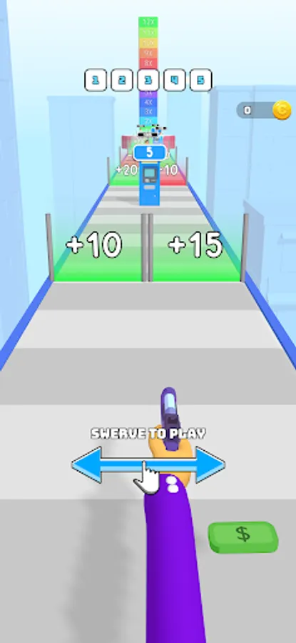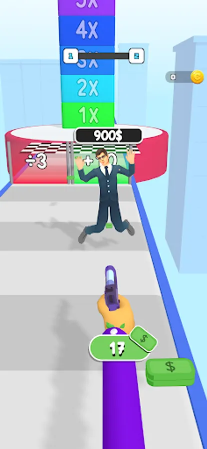 Collect money by passing through the gates, make them more and more rich by shooting them!