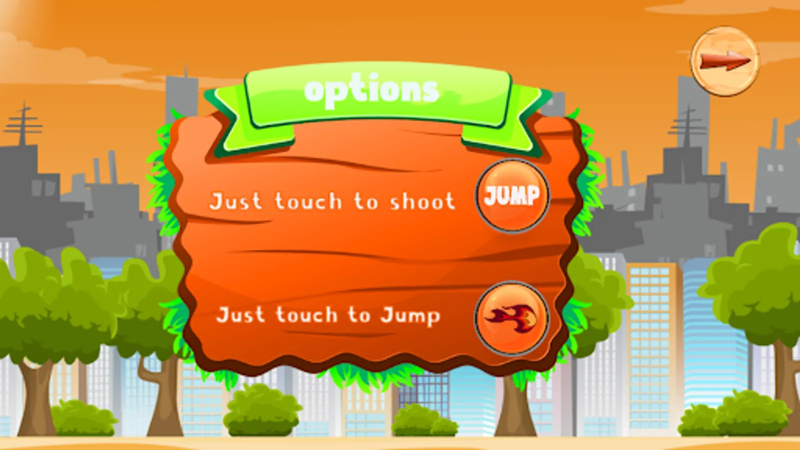 After opening the app, choose your level and start playing, then run, jump and shoot