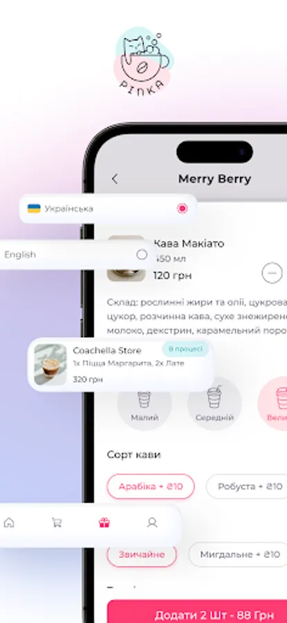 Pinka coffee is a universal mobile app for those who cannot live without coffee.