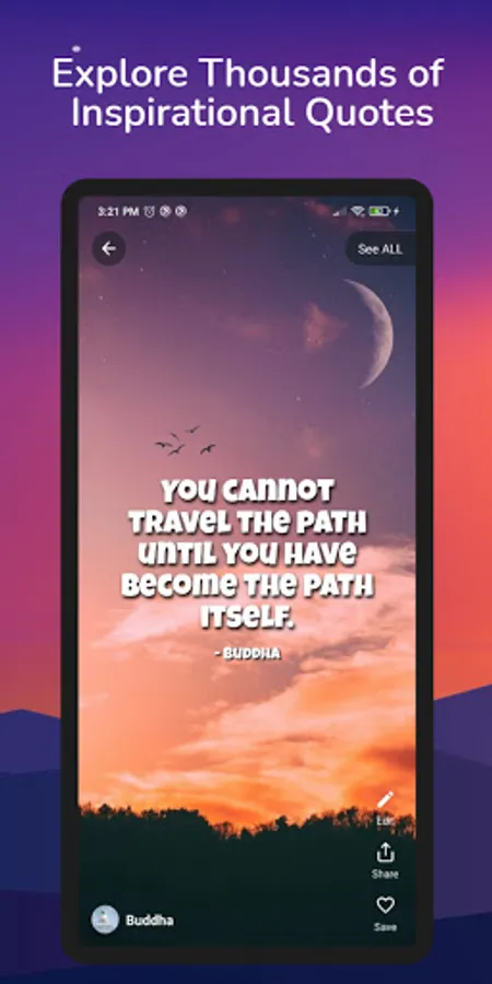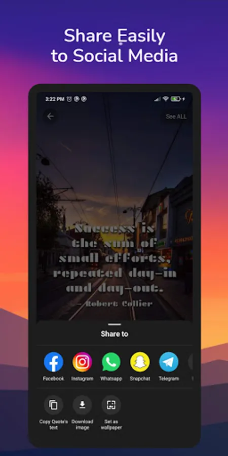 ❤ The ability to edit and share quotes as images seamlessly on social media.
