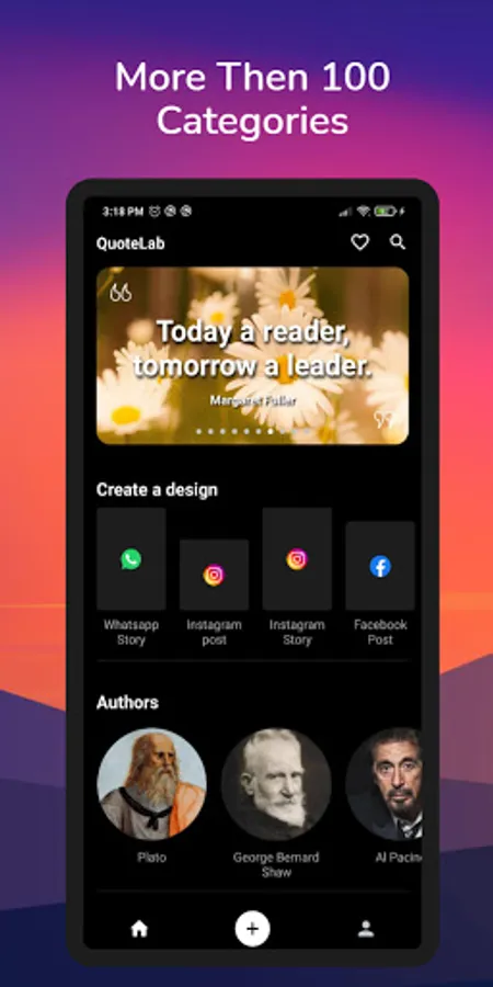 With QuoteLab, you can either bring your thoughts to life by crafting beautiful picture quotes or discover a world of inspiration with thousands of uplifting quotes and famous sayings from renowned authors and celebrities.