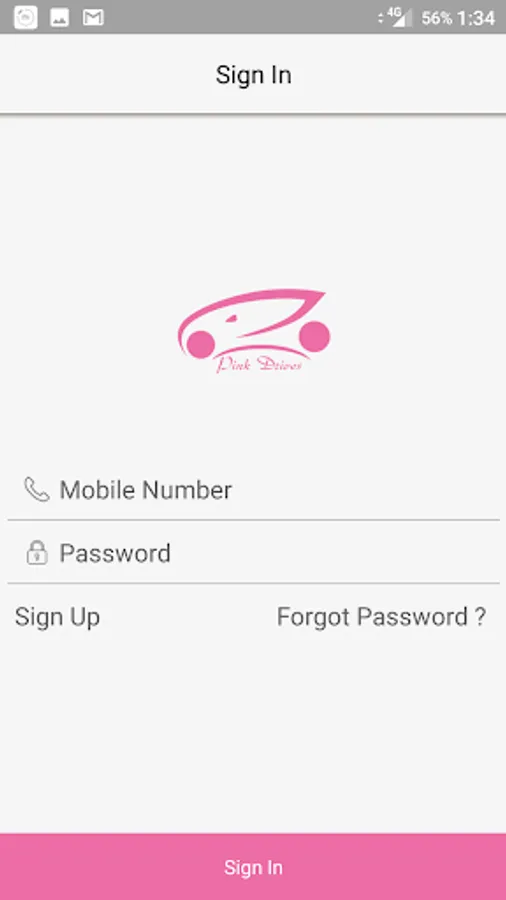 "Pink Drives driver app for a premium ride hailing service driven by ladies exclusively for ladies and children
