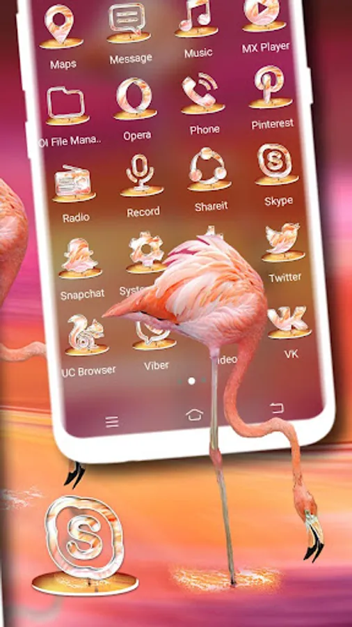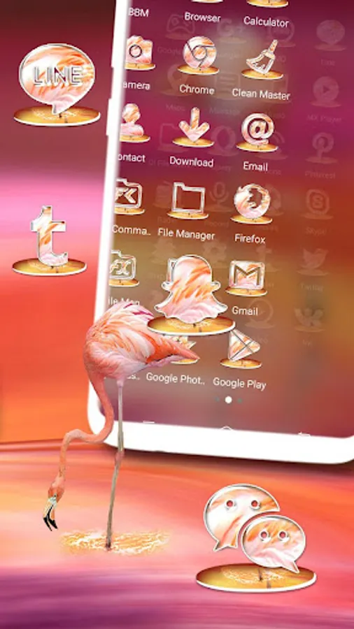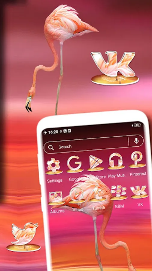 HD wallpapers and splendid app icons give you intense visual pleasure. You will own the new Pink Flamingo theme . Flamingo theme is an Android theme for Galaxy S20 with 3D special effects, perfectly thematic device icons and cool Pink Flamingo theme wallpapers. Flamingo Theme suits most Android phones, including Samsung S20, Huawei Mate8, etc. To activate your amazing experience and to make your phone look gorgeous, install the Pink Flamingo Theme.