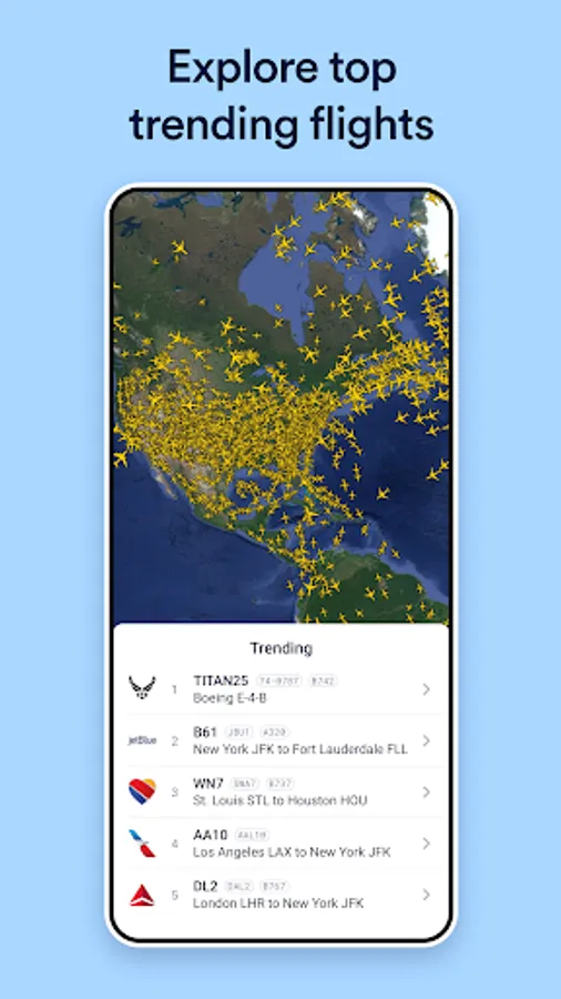 Quickly see the top 5 live trending flights tracked right now