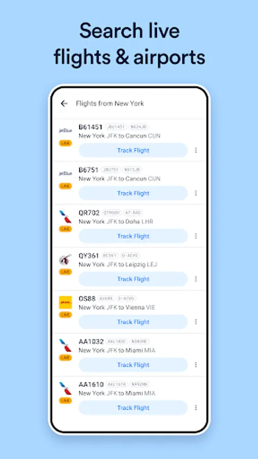 Quickly find and track flights live on a map and explore live status information