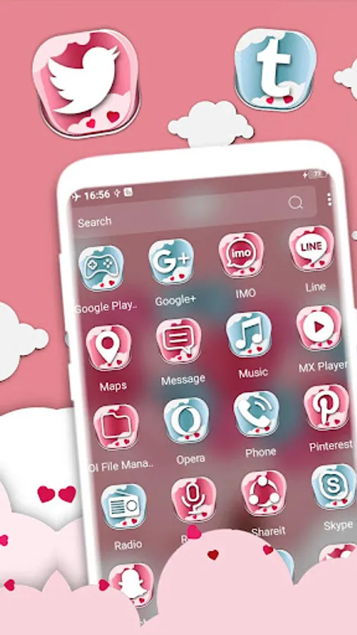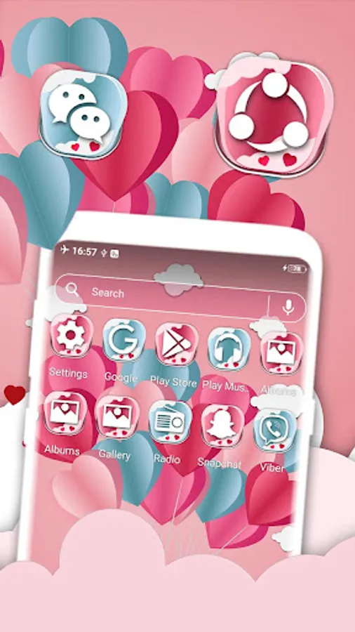 Icon Pack: It contains customized icons set along with supported other icon masking to change overall look like Pink Love style home screen