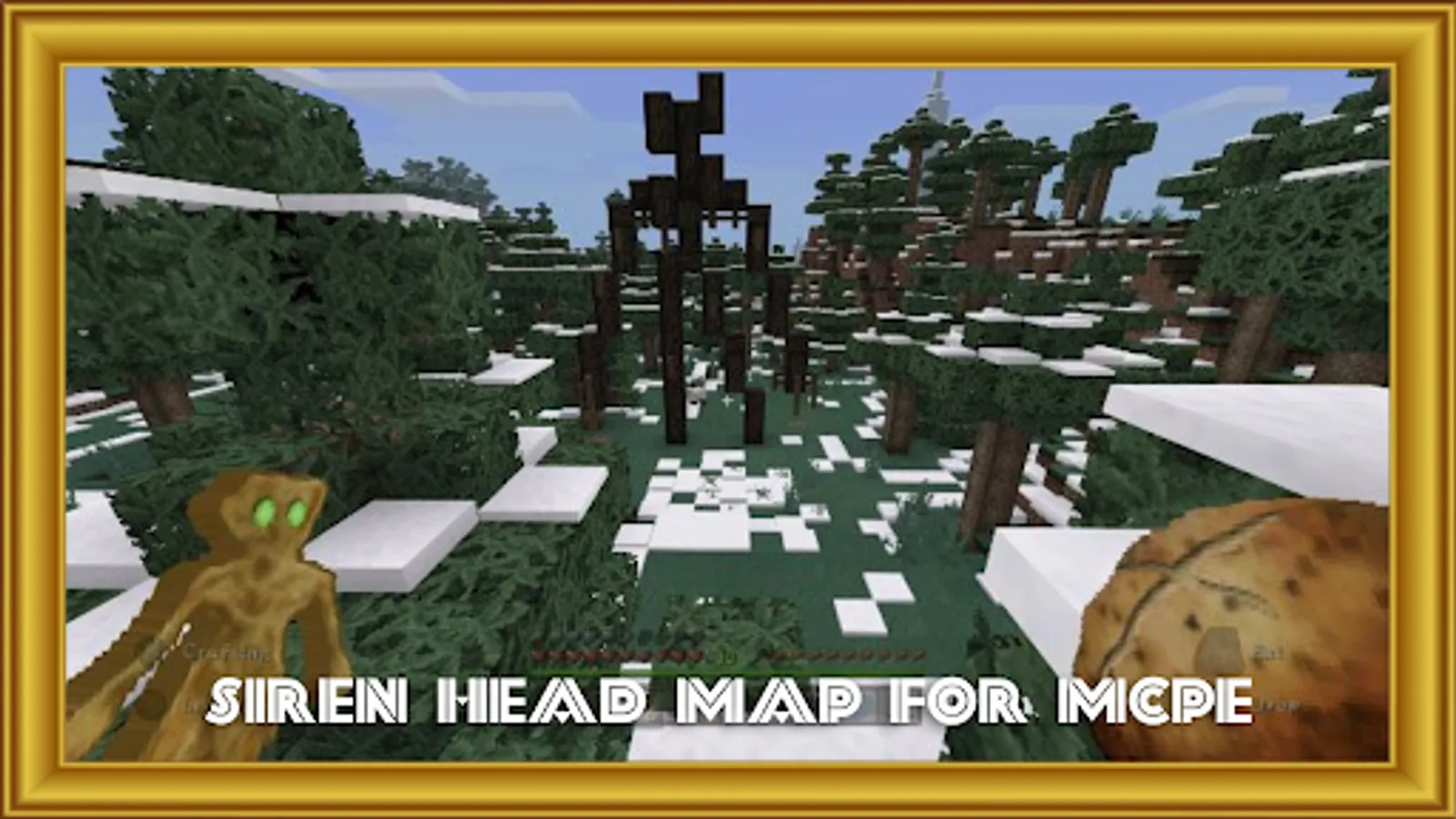 Siren Head Map for MCPE app contains allow to add different types of mod siren head like baby siren, siren head horror enemy, siren head spawn egg, siren head monster skin, siren head crafting and building etc.