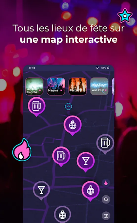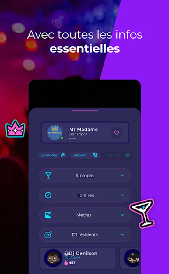 Personalize your map according to your favorite music styles, your age group or the type of establishment you are looking for and find the places that perfectly match your desires.