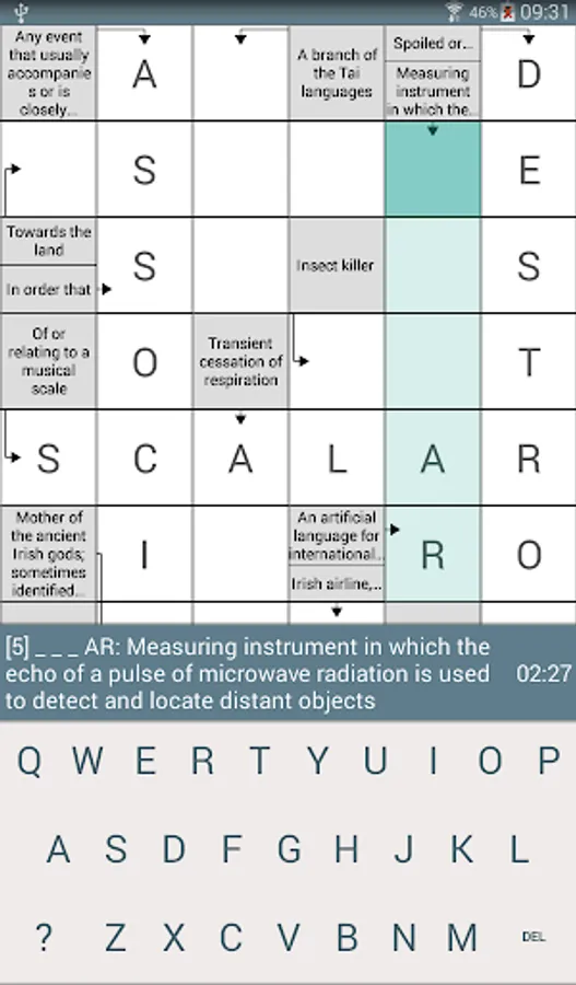 This crosswords game (arrowwords) has thousands of puzzles distributed in 6 different languages!