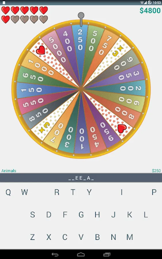 The game is based on Hangman, each round has a category and a blank word puzzle, with each blank field representing a letter in the answer.