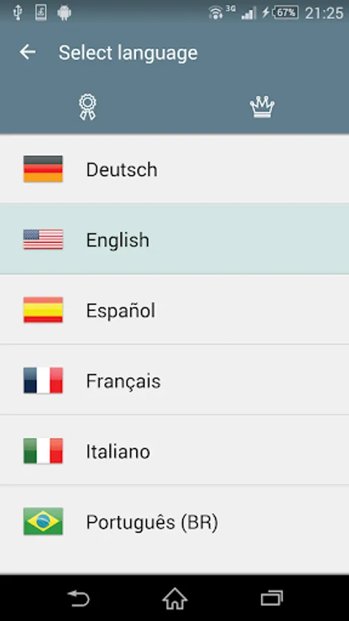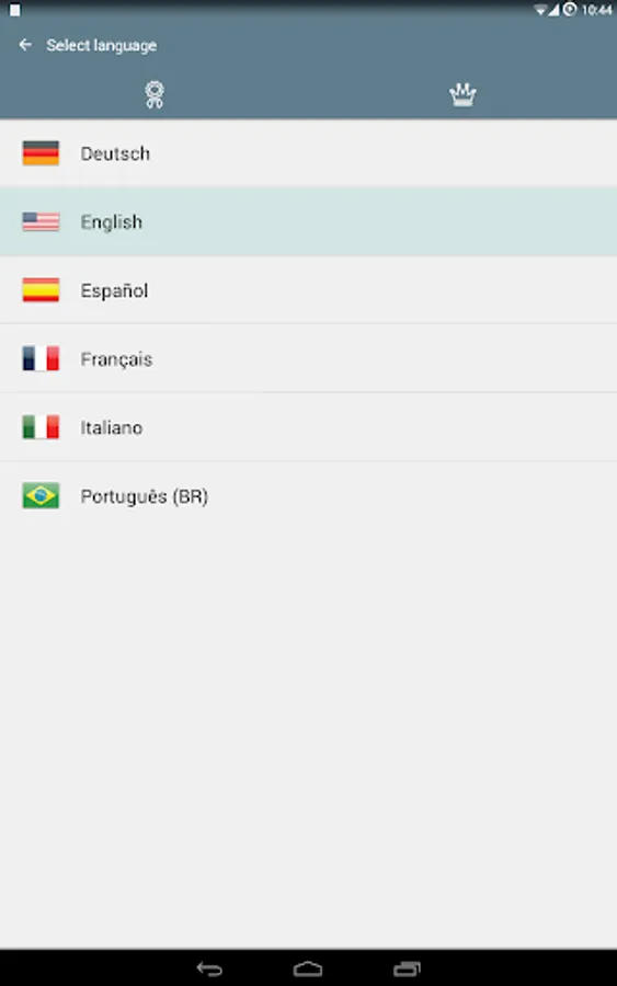 Words available on the following languages: english, spanish (español), brazilian portuguese (português), german (deutsch), french (français) and italian (italiano).