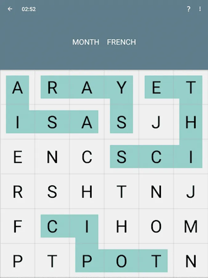 Search each letter from the word horizontally and vertically, no diagonals are allowed!