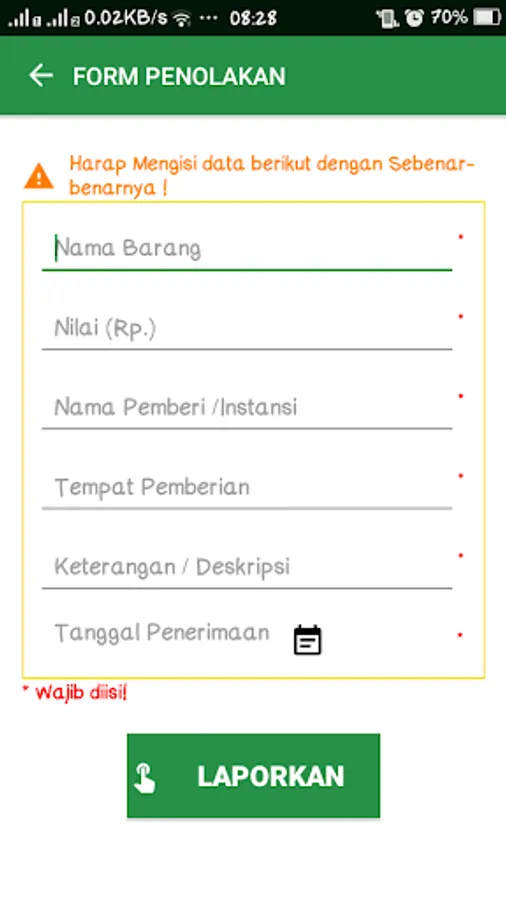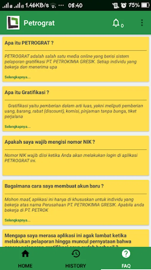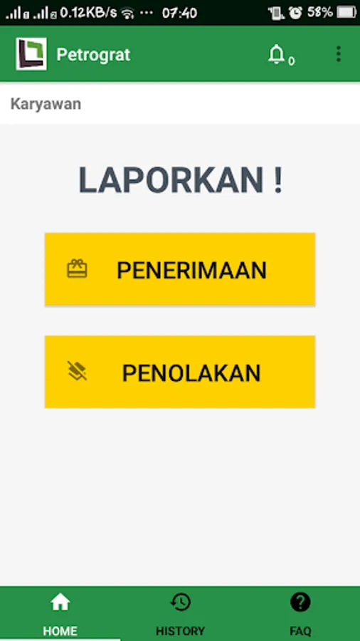 An application of an online reporting system gratification that can be used by employees PT.Petrokimia Gresik. Users can perform reporting, get historical reporting, get notifications of goods and also see faq.