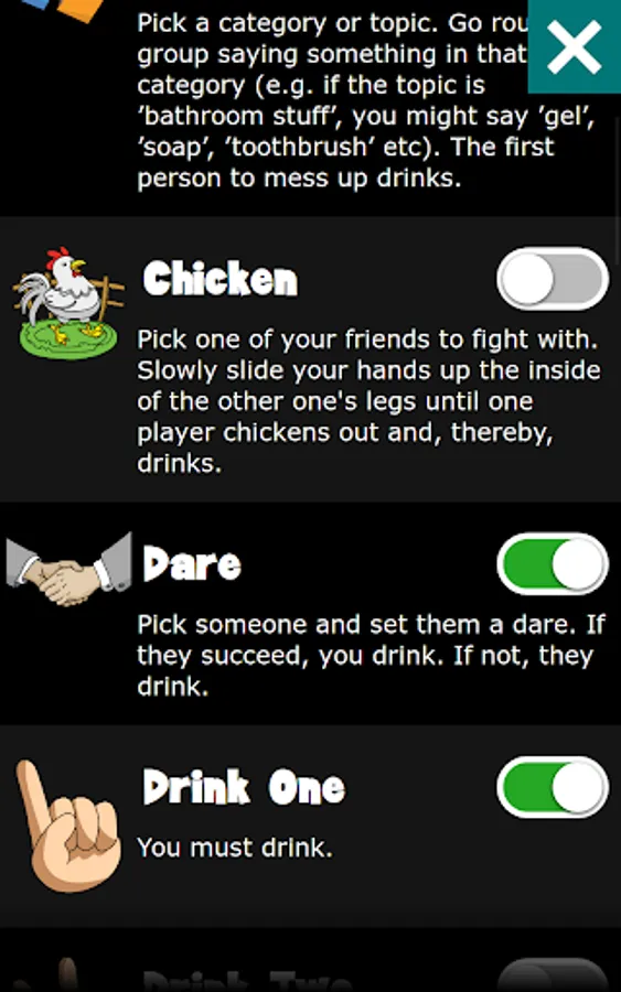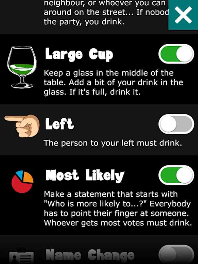 Wheel of Drinking is a drinking game where players spin a wheel and do as it says. It's a very simple mechanism to provide a lot of fun. 38 different games to try.