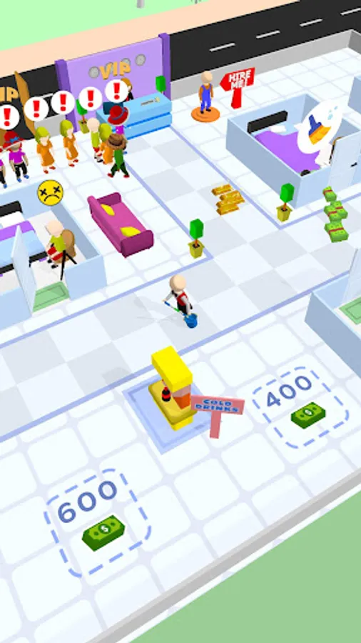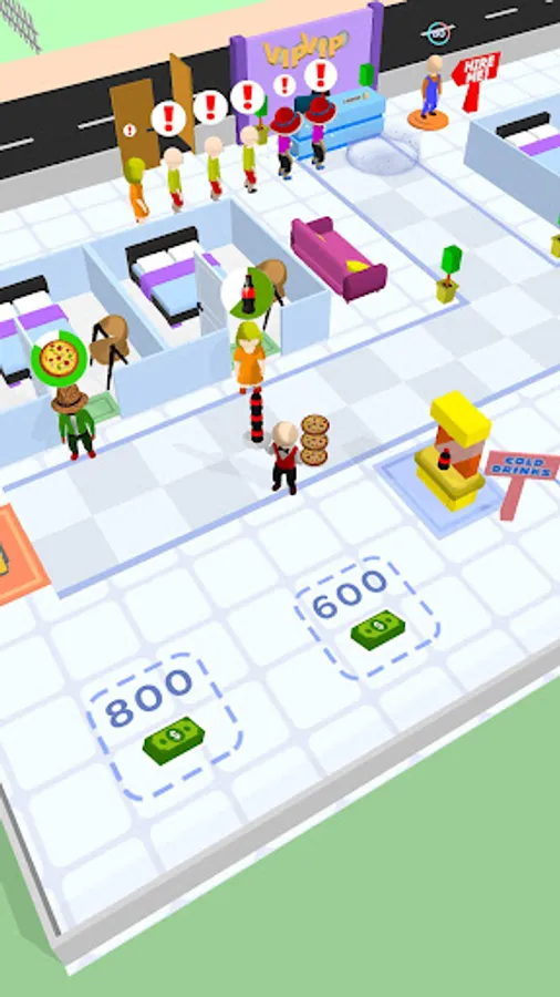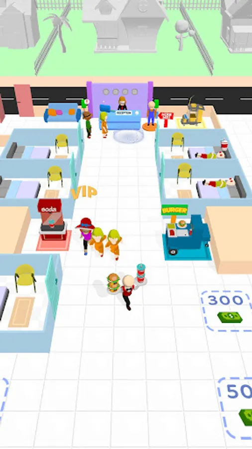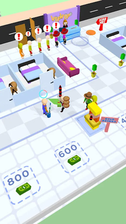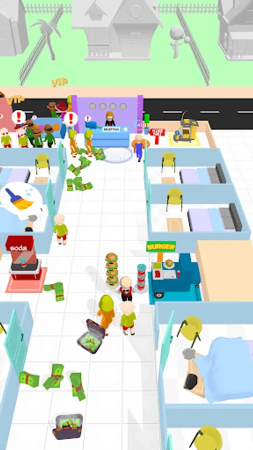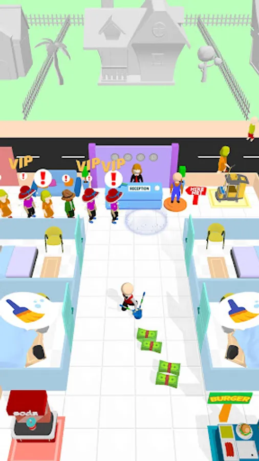 Manage your crazy big hotel by hiring some employees which will help you in cleaning and serving customers.