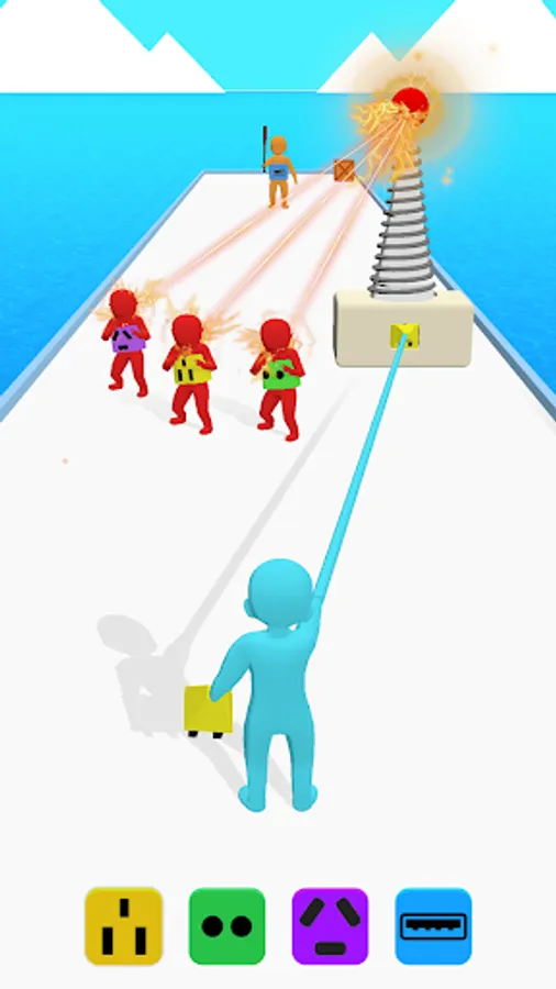 Main objective of the game is to generate electric shock by completing the circuit. And to do so user will have to first select the plug which will fit on the socket which is on enemy. After selecting the right plug kill the enemy by tapping on enemy.