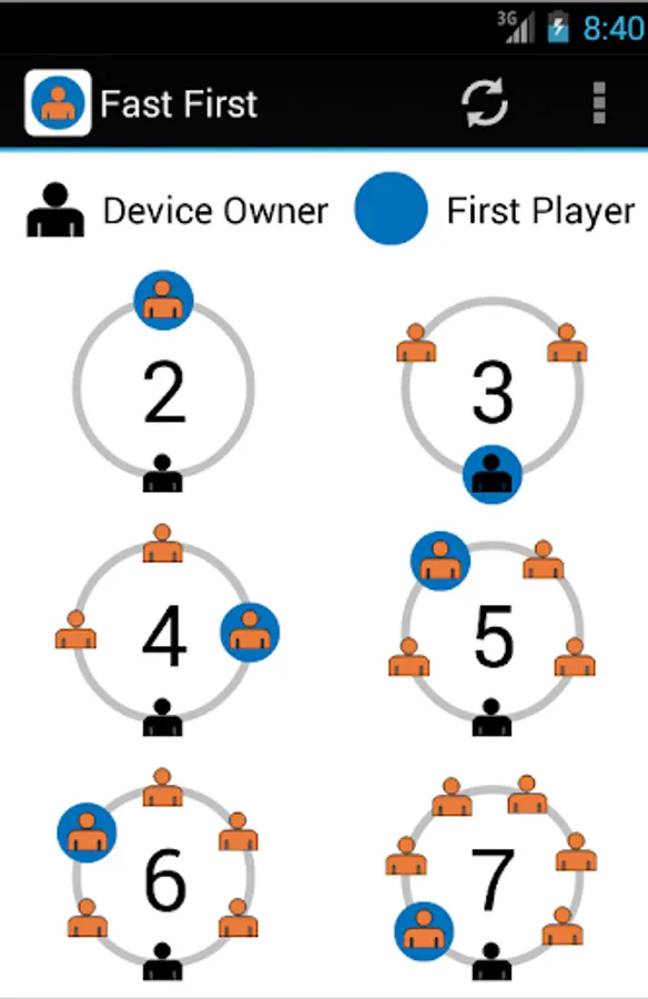 Less time spinning, more time playing. Fast First is the quickest way to select the first player for your table top game. Start the app and you have first player chosen for 2 - 7 players. If you need complete player order, that's also available.