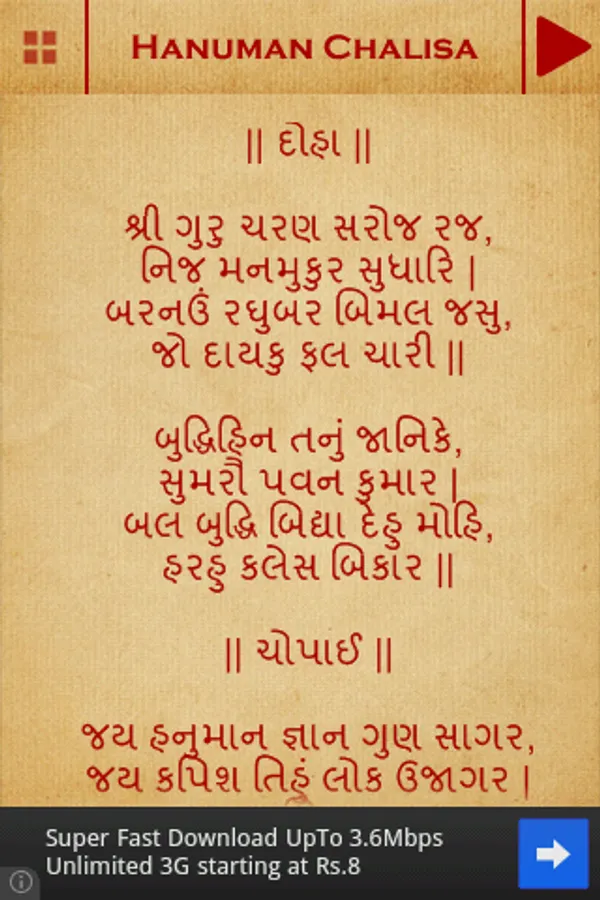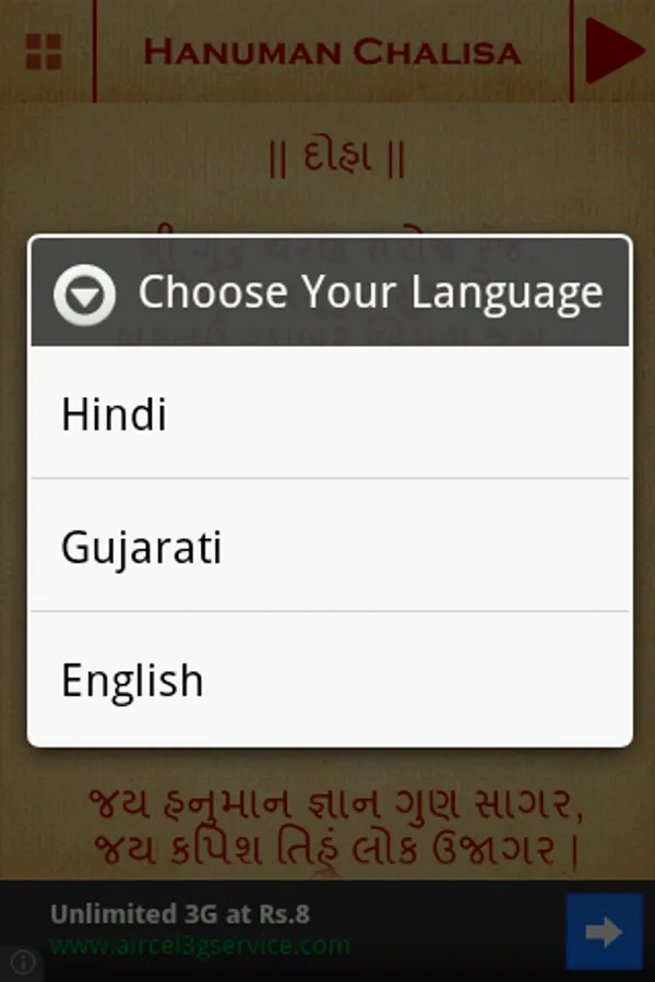 This Hanuman Chalisa application is in 3 such language Hindi,Gujarati and English.