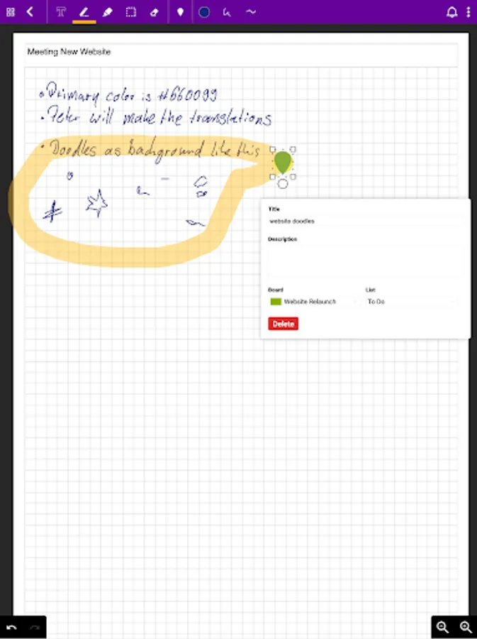 -Mark important text parts or sketches and set a pin right next to it. pinnery will then create task with this contents for you.