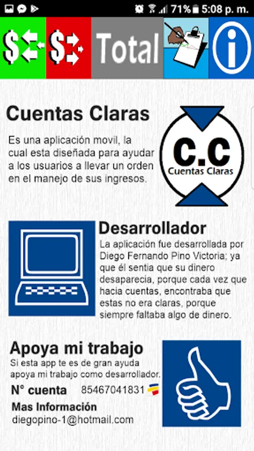 With this tool you can take in an orderly their income and expenses; since you can record each entry of each expense money and their respective date, quantity and description, to see and be aware as is the flow of money.